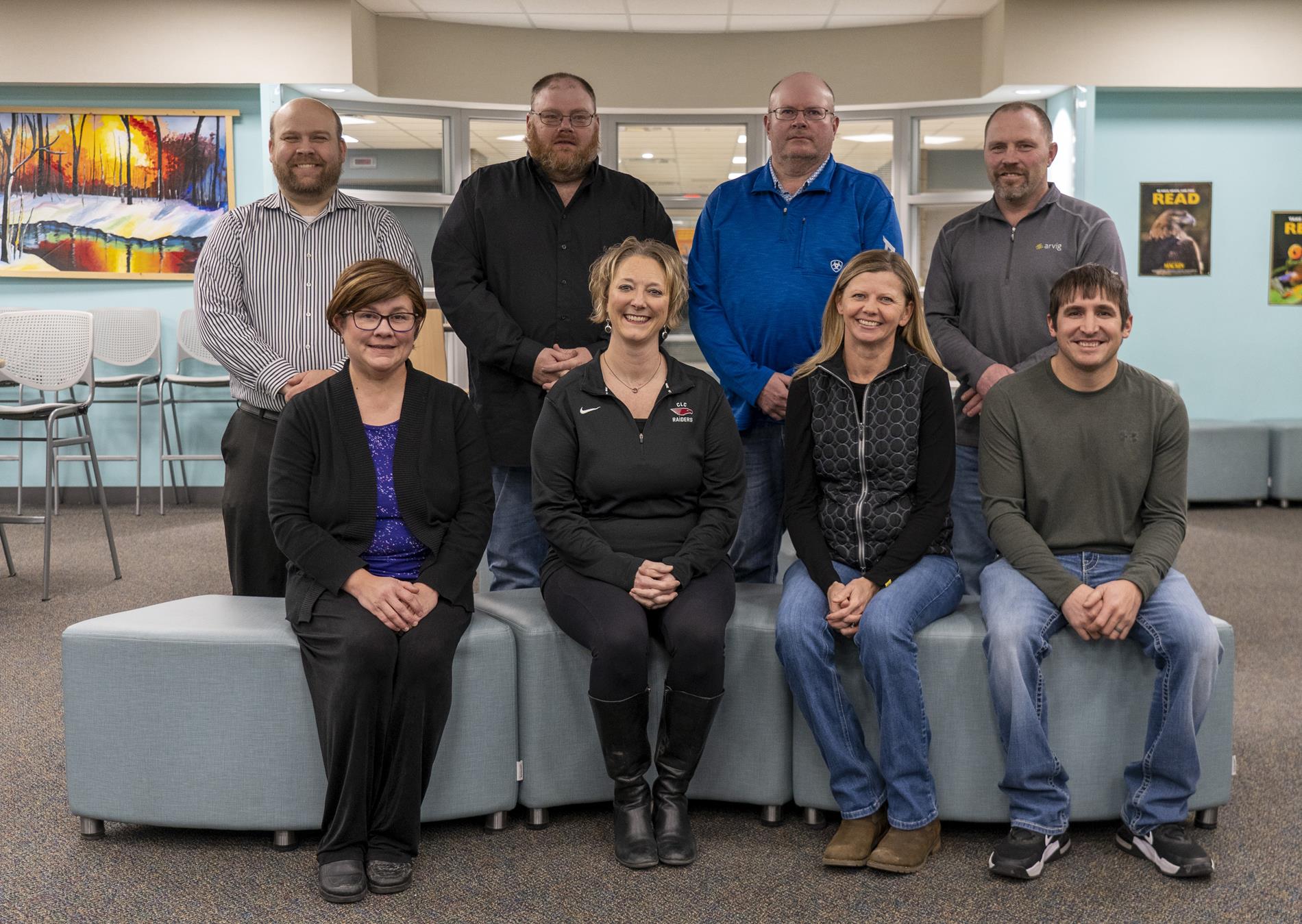 The New York Mills School Board includes (back row, left to right) Superintendent Adam Johnson, Derek Braukmann (treasurer), Brian Schermerhorn and Derek Geiser. (Front row) Amy Mursu (chair), Kristina Ehnert (vice chair), Jodi Seelhammer (clerk), and Ethan Kern. The board meets on the fourth Monday of the month (except for May and December) at 5:30 p.m. in the High School Media Center. During summer months (June, July, August) the board will meet at 4:30 p.m.